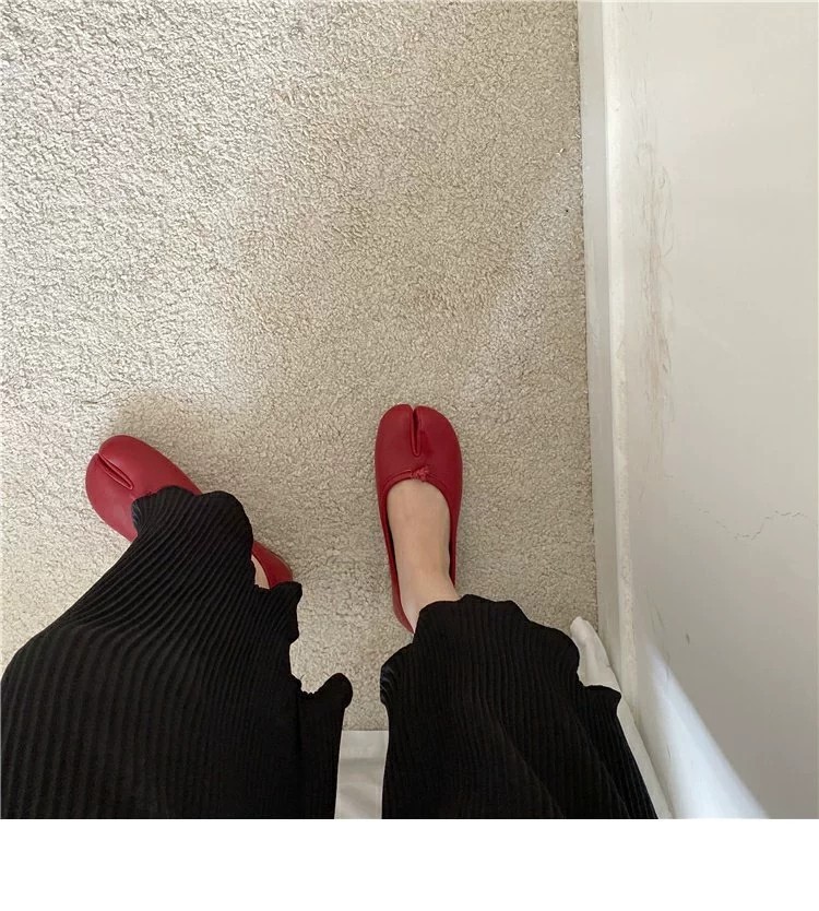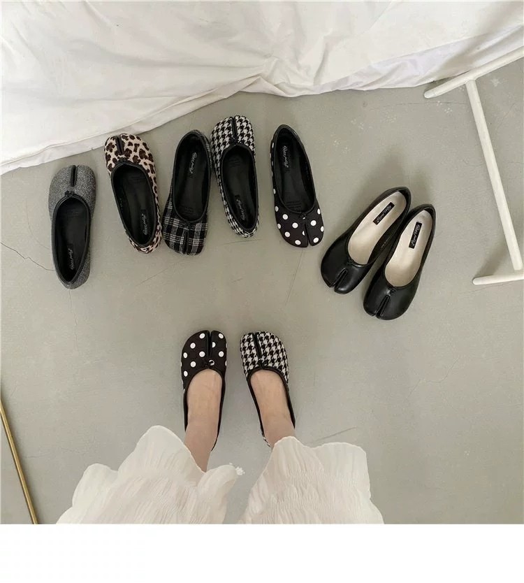 Ispirate alle tradizionali calzature giapponesi Tabi, queste ballerine Ninja rappresentano il perfetto equilibrio tra stile e benessere. Il design della punta spezzata aggiunge un tocco originale e raffinato, mentre il tessuto morbido e leggero garantisce un comfort assoluto. Per una giornata in ufficio o per un’uscita informale, queste scarpe sono ideali per un look chic e confortevole.