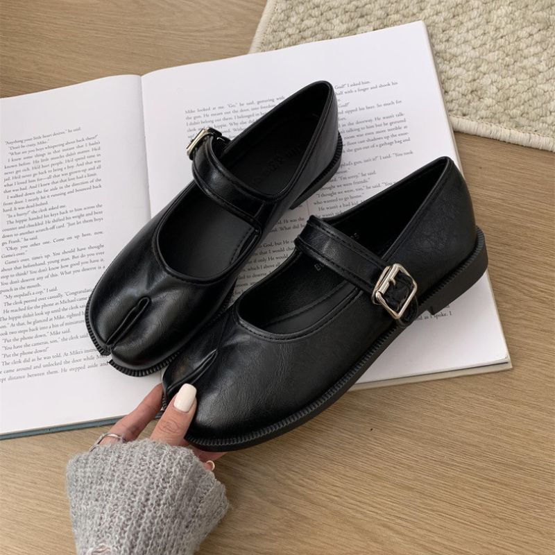 Ispirate alle tradizionali scarpe giapponesi Tabi, queste eleganti ballerine Mary Jane combinano un patrimonio senza tempo con un tocco contemporaneo. Il loro design con punta spezzata non solo offre un’estetica unica e all’avanguardia, ma anche un comfort e una flessibilità ottimali per l’uso quotidiano. L’elegante finitura in pelle sintetica e il cinturino regolabile aggiungono un tocco sofisticato, rendendo queste scarpe un pezzo indispensabile per valorizzare il vostro stile.