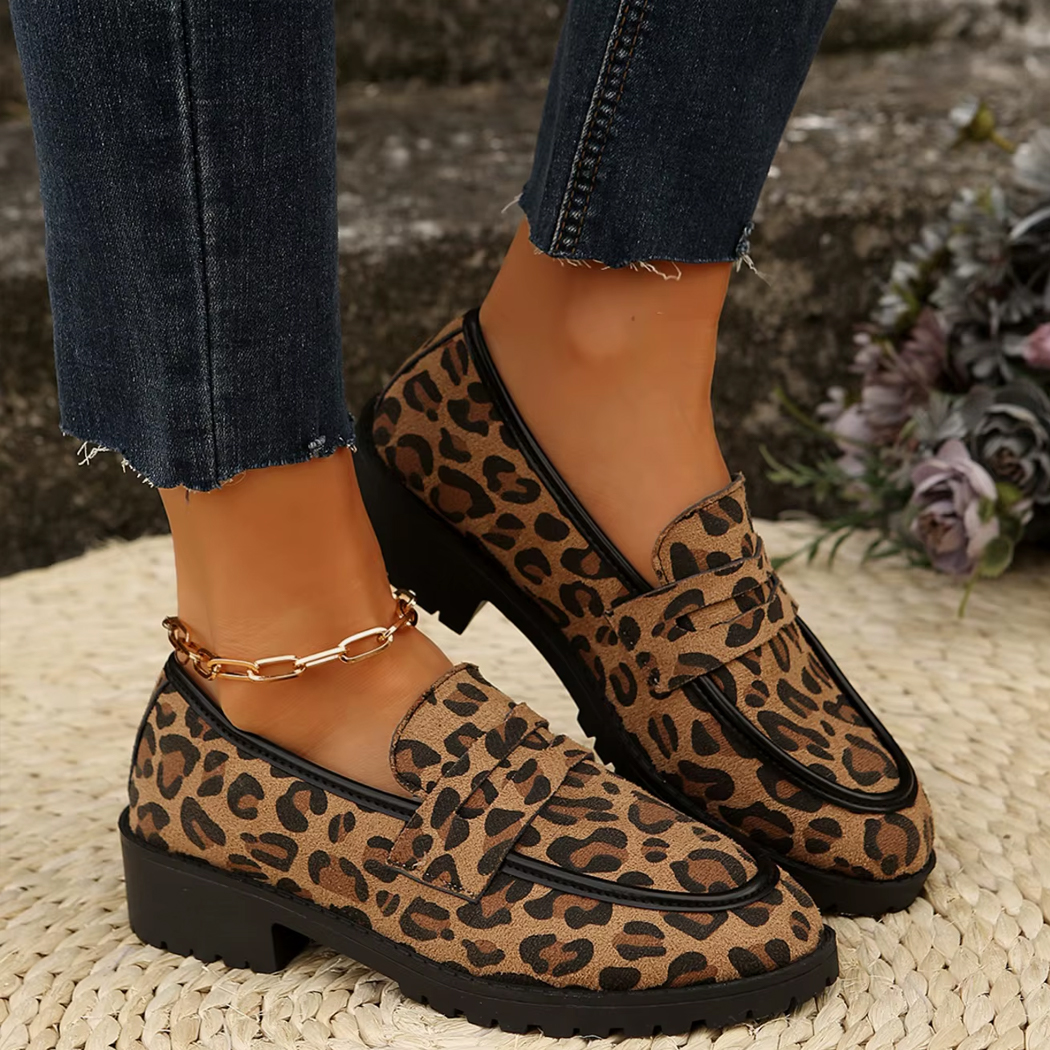 Osate essere selvaggiamente eleganti con questo mocassino con tacco leopardato, un must-have per le fashioniste in cerca di carattere.