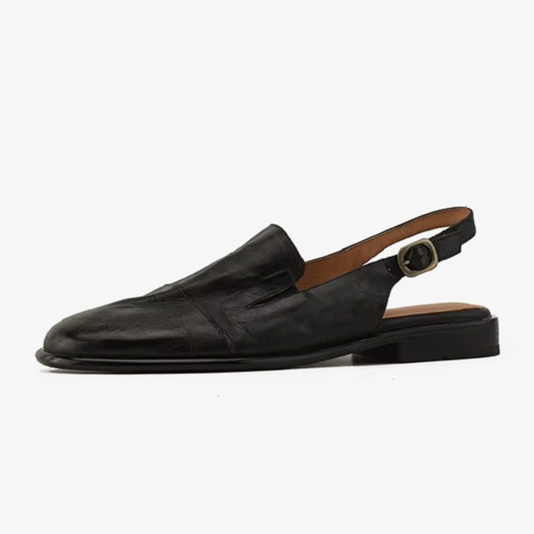 Realizzato in vera pelle, questo mocassino si adatta alla forma del piede e lascia traspirare il tallone. Il cinturino regolabile sul retro assicura che la scarpa si adatti perfettamente alla caviglia.