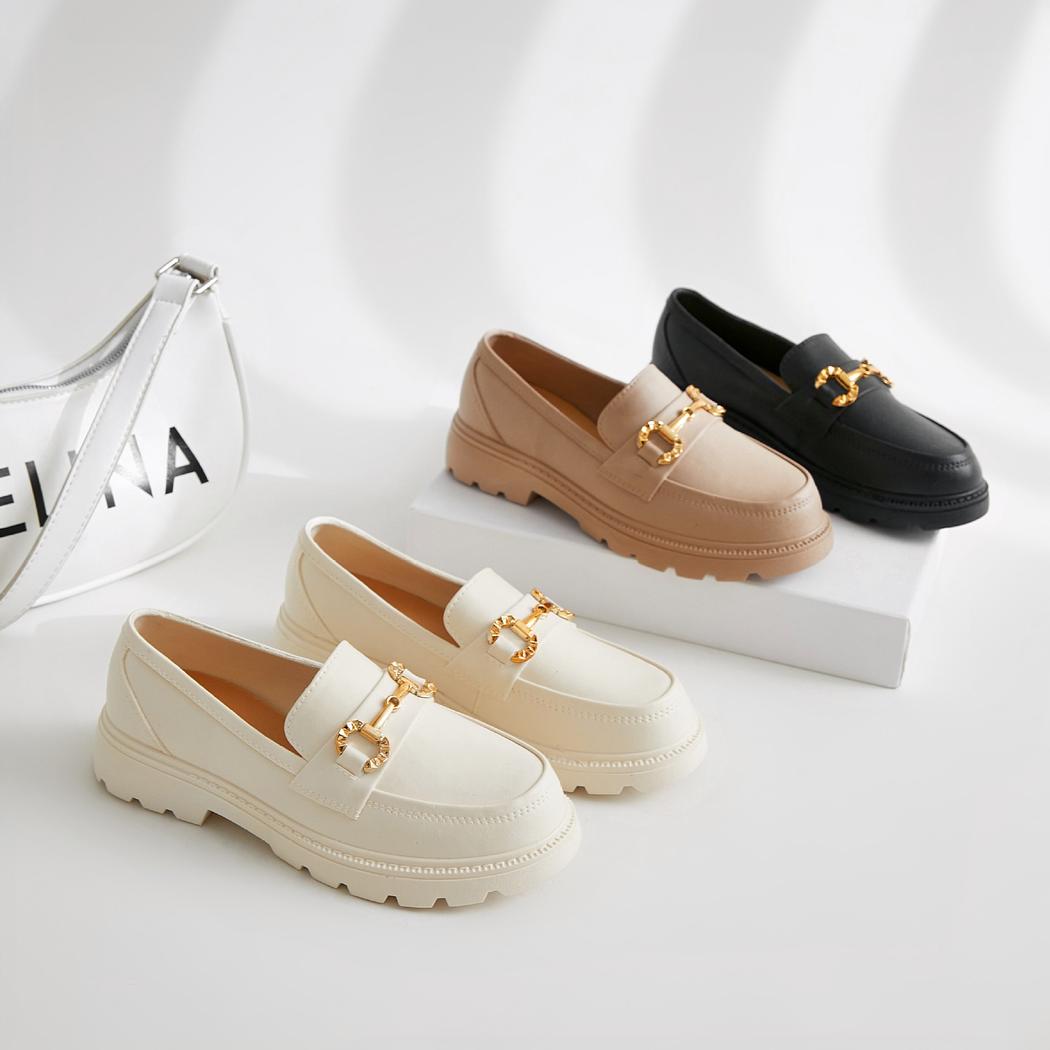 Mocassini con plateau e catena in metallo per le donne