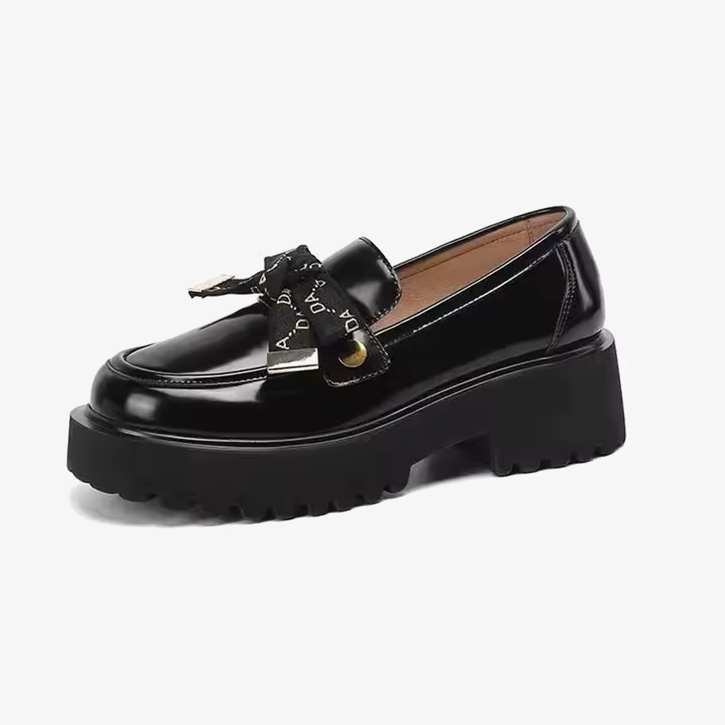 Mocassini da donna neri con fiocco