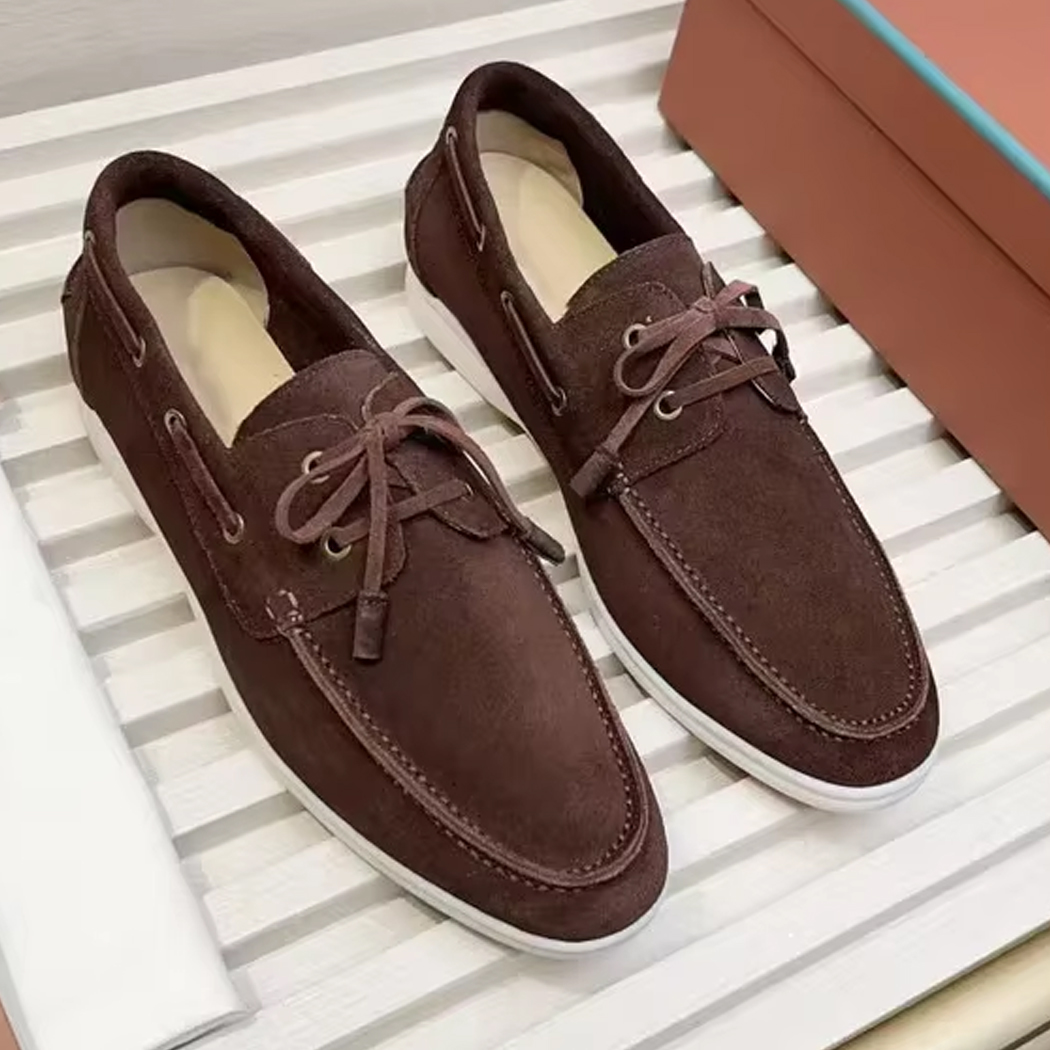 Realizzato in morbida pelle scamosciata di qualità, questo mocassino stile barca ha una consistenza vellutata e un design elegante. La scarpa si modella delicatamente alla forma del piede per un comfort immediato e duraturo.