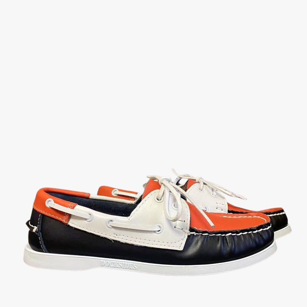 Inoltre, grazie alla sua naturale flessibilità, questa suola favorisce anche un comfort ottimale, offrendo un’ammortizzazione extra. L’interno foderato assicura morbidezza e comfort non appena si infilano i piedi nei nostri mocassini da barca arancioni a tre tonalità.