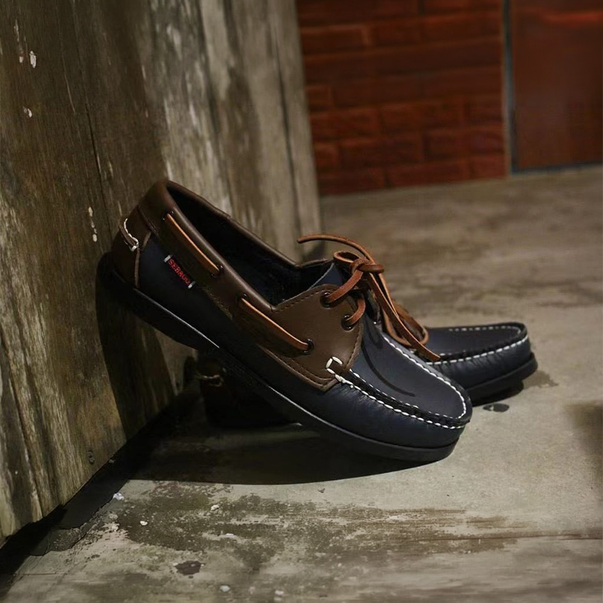 I nostri mocassini da barca da Uomo sono realizzati a mano in vera pelle di alta qualità. con un design classico che combina il blu navy e il marrone, uniscono stile e comfort. I lacci assicurano una calzata perfetta per l’abbigliamento quotidiano o casual, mentre le cuciture bianche ravvivano la scarpa. Un must per il guardaroba di ogni uomo!