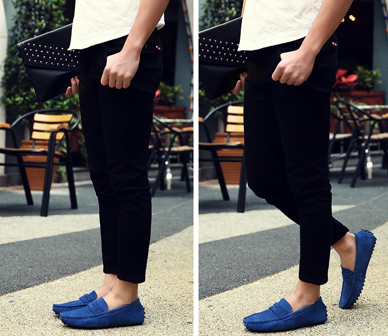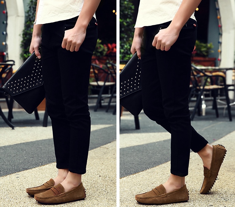 I mocassini da uomo in morbida pelle scamosciata sono una scelta perfetta per gli uomini eleganti che desiderano combinare stile e comfort. Realizzate con cura, queste scarpe hanno una finitura morbida e liscia che le rende piacevoli al tatto. Il loro design classico e senza tempo è facile da abbinare a una varietà di outfit casual e formali.