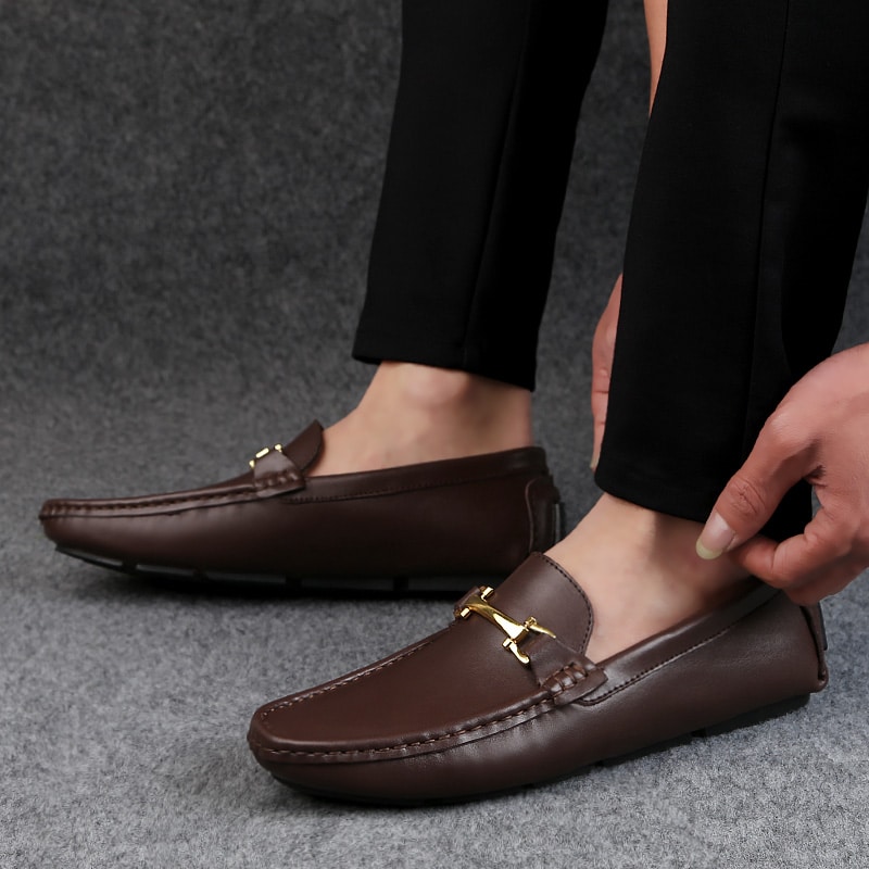 Questo modello è disponibile in una gamma di tre colori. Il marrone, che darà un tocco di serietà al suo abbigliamento; il nero, un colore di base che si abbina a tutti gli outfit, ma in particolare a un chino o a un abito. Infine, un colore più chiaro, questo bel grigio, che si abbinerà perfettamente ad un outfit da matrimonio o alle uscite estive. Ma sta alla tua immaginazione abbinare i nostri mocassini a qualsiasi outfit!