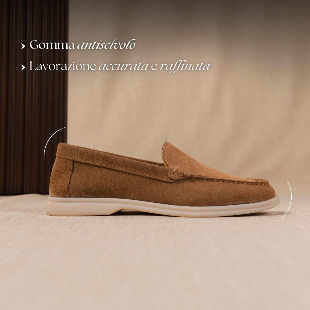 The Yacht è pura eleganza. Realizzati in lussuosa pelle scamosciata e rifiniti con cura, questi mocassini di lusso si distinguono per il loro design chic e minimalista. Ogni dettaglio è stato pensato per riflettere uno stile senza tempo e un’allure casual, perfetto per gli uomini più esigenti.