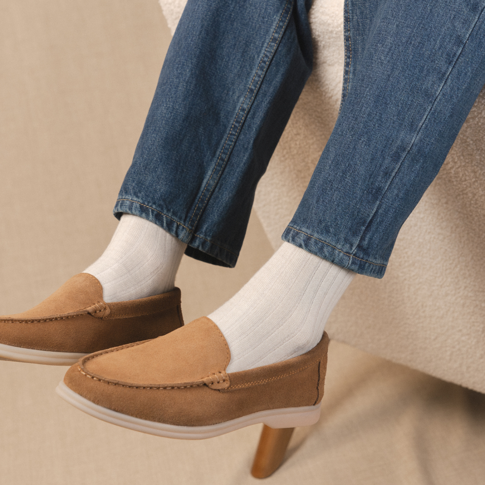 Con la Yacht, ogni passo diventa un’esperienza confortevole. La sua morbida pelle scamosciata si modella delicatamente alla forma del piede, mentre la suola leggera e resistente assicura un comfort eccezionale, anche nelle giornate più lunghe.